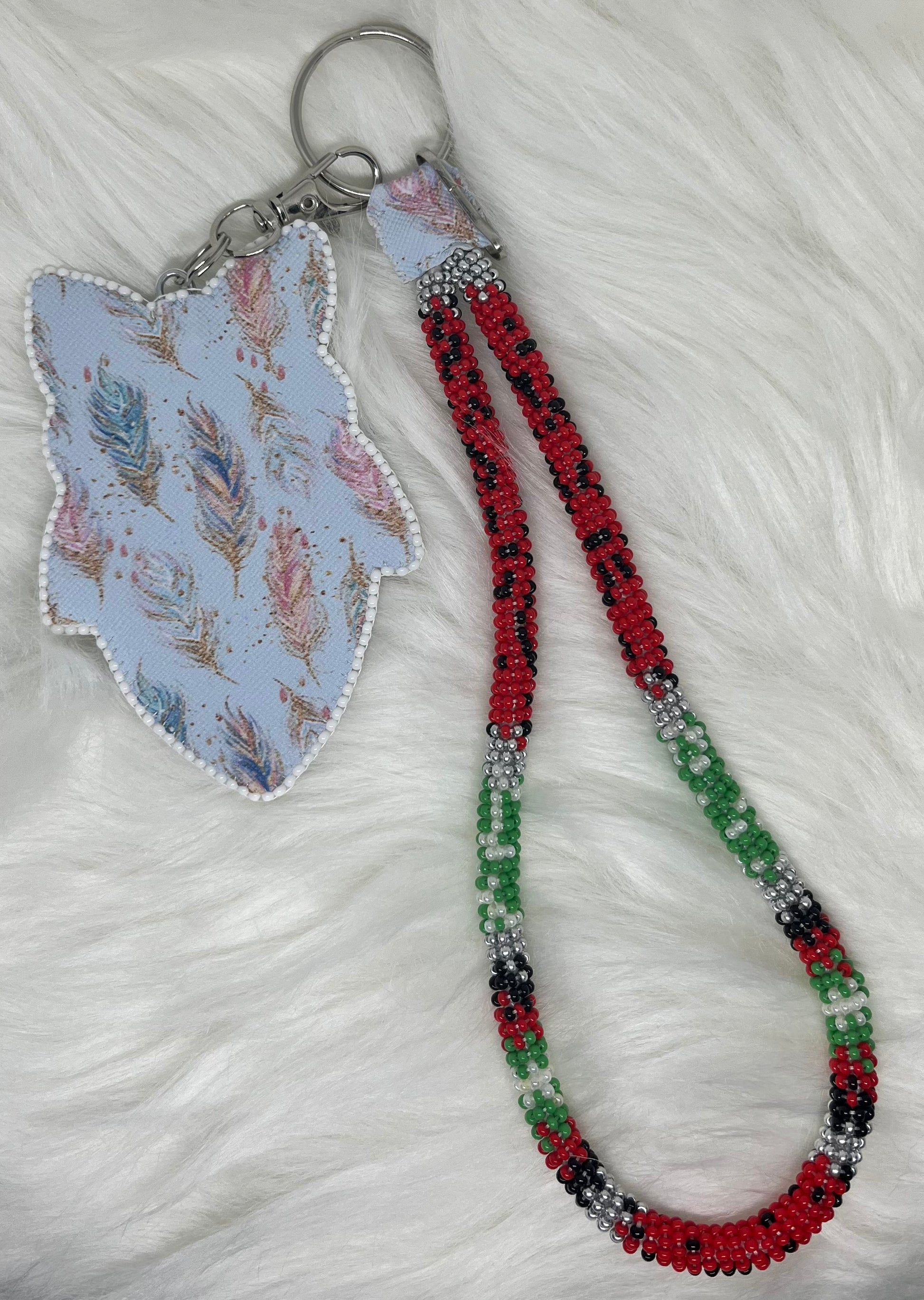 This stunning keychain features a meticulously beaded strawberry adorned with a vibrant blue flower, accented with pearl details and green leaves. The durable, colorful beaded strap combines red, black, green, and silver beads for a striking, versatile look. Crafted with care, this keychain adds a touch of elegance and cultural flair to your keys or bag. Perfect as a unique gift or personal accessory.