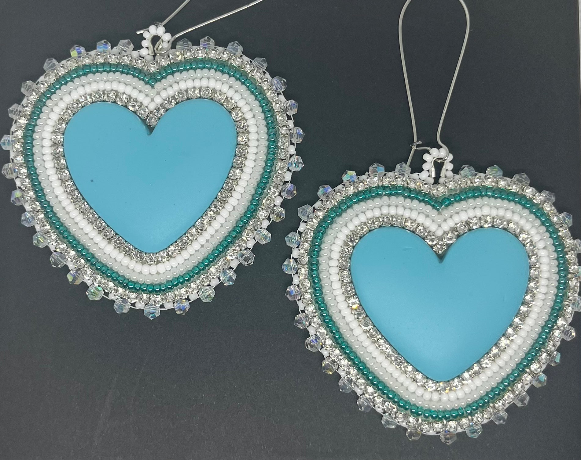 Add a touch of elegance with these handmade blue heart earrings. Featuring intricate beading and sparkling accents, these unique pieces are perfect for any occasion.